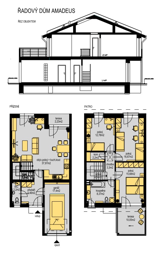 centrální vysavač a venkovní markýzu. Řadových domů typu AMADEUS je postaveno celkem 8, na zastavovacím plánku jsou označeny písmenem A